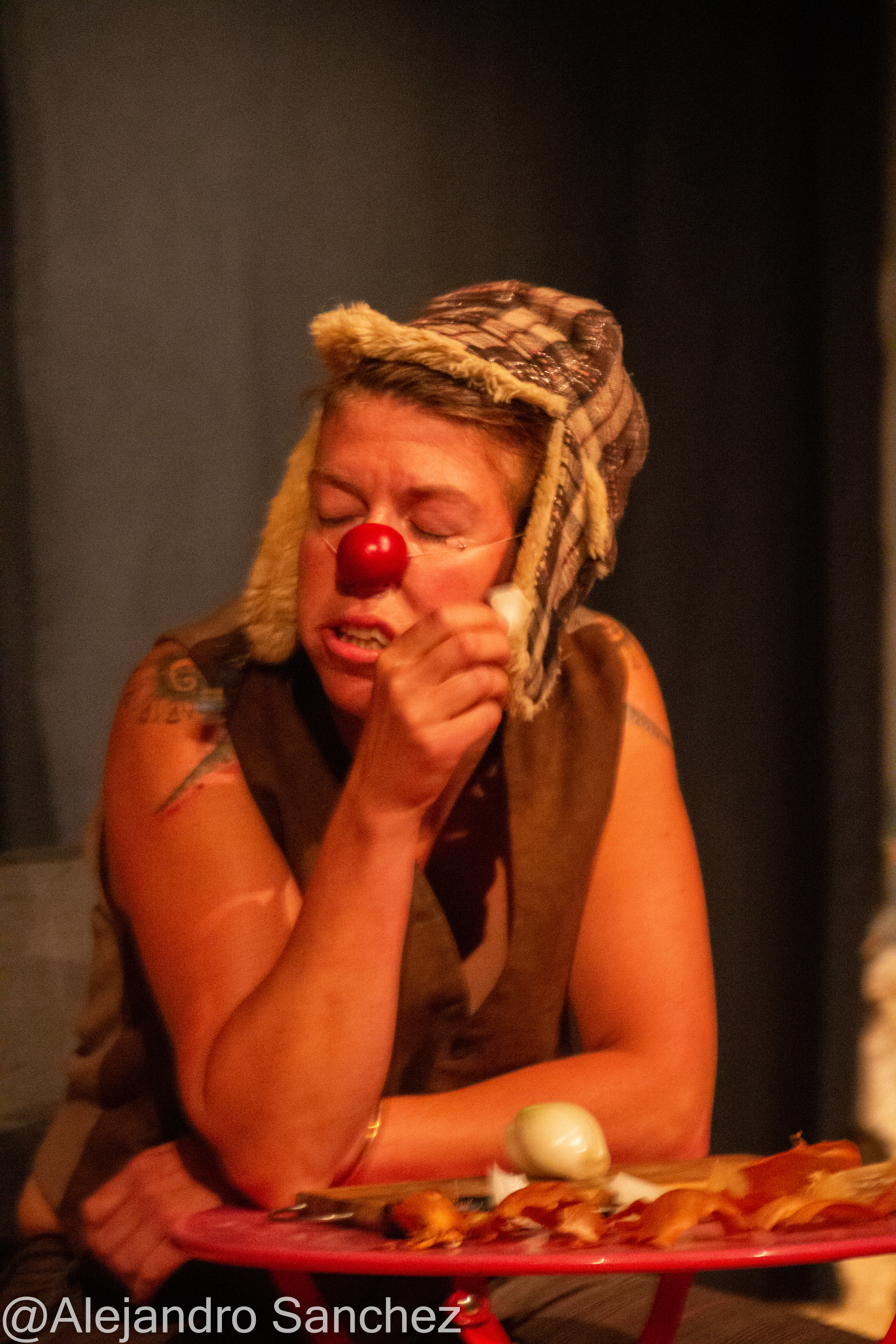 Parallèlement à cela, je rencontre le clown et suis des stages auprès d’Anna Berry, Nicolas Quetelard, et Eric Blouet où j’expérimente l’organicité du joueur et la démesure du clown. En 2016, j’intègre la formation professionnelle du Samovar, école de clown à Bagnolet, où j’apprends la pédagogie Dallaire avec Christian Tétard, Emmanuel Sembely et Lætitia Deckert grâce auxquels je développe ma boite à outil technique du clown en lien avec le public et l’objectif de faire rire.